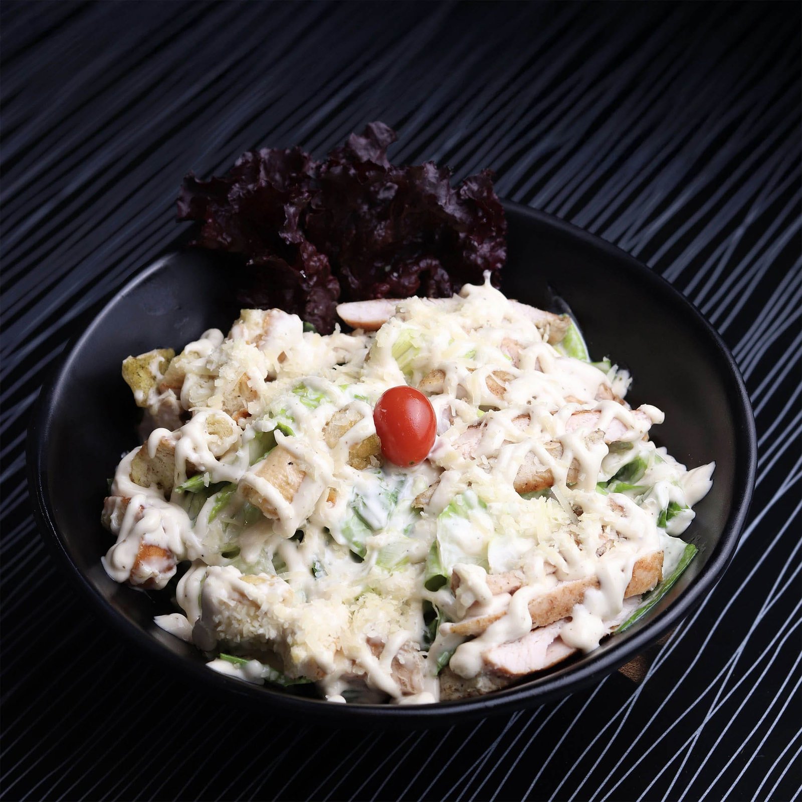 خس مع صوص سيزر اللذيذ و شرحات الدجاج المشوية مع توست محمص وجبنة برمزان